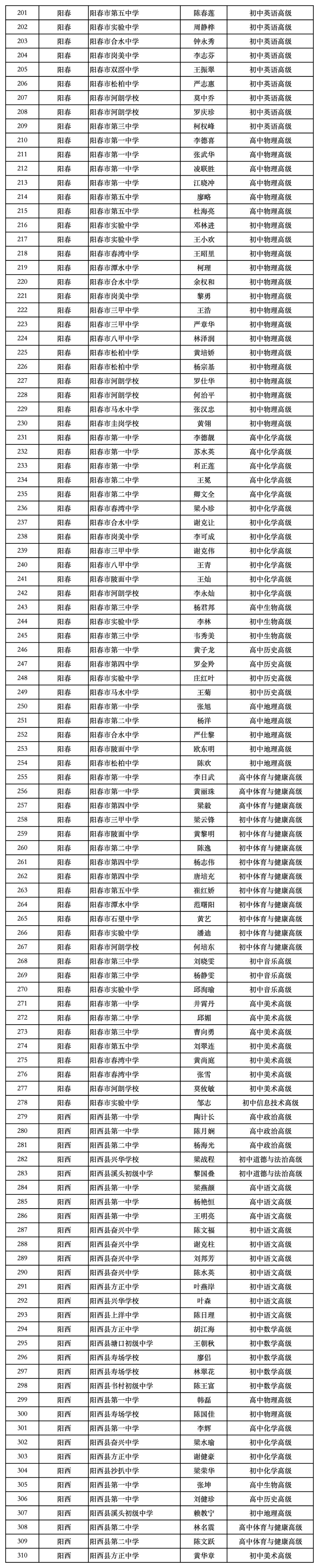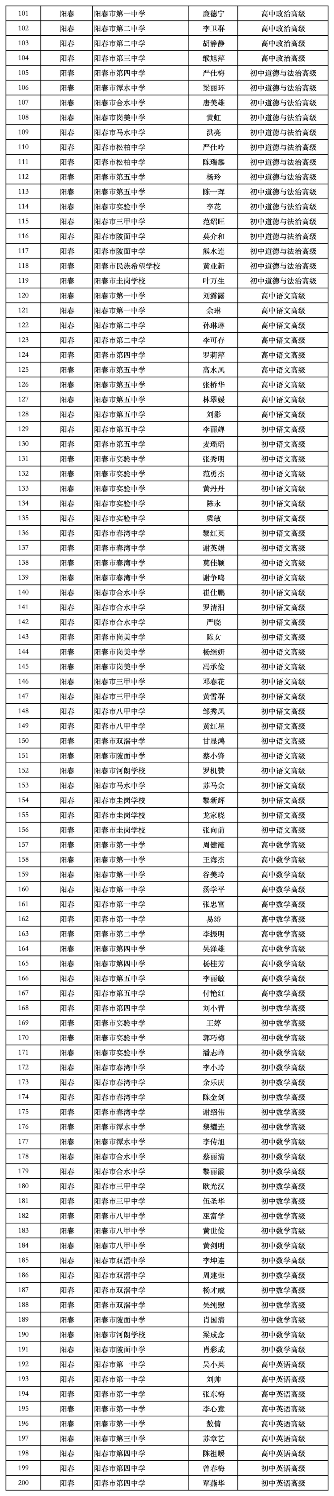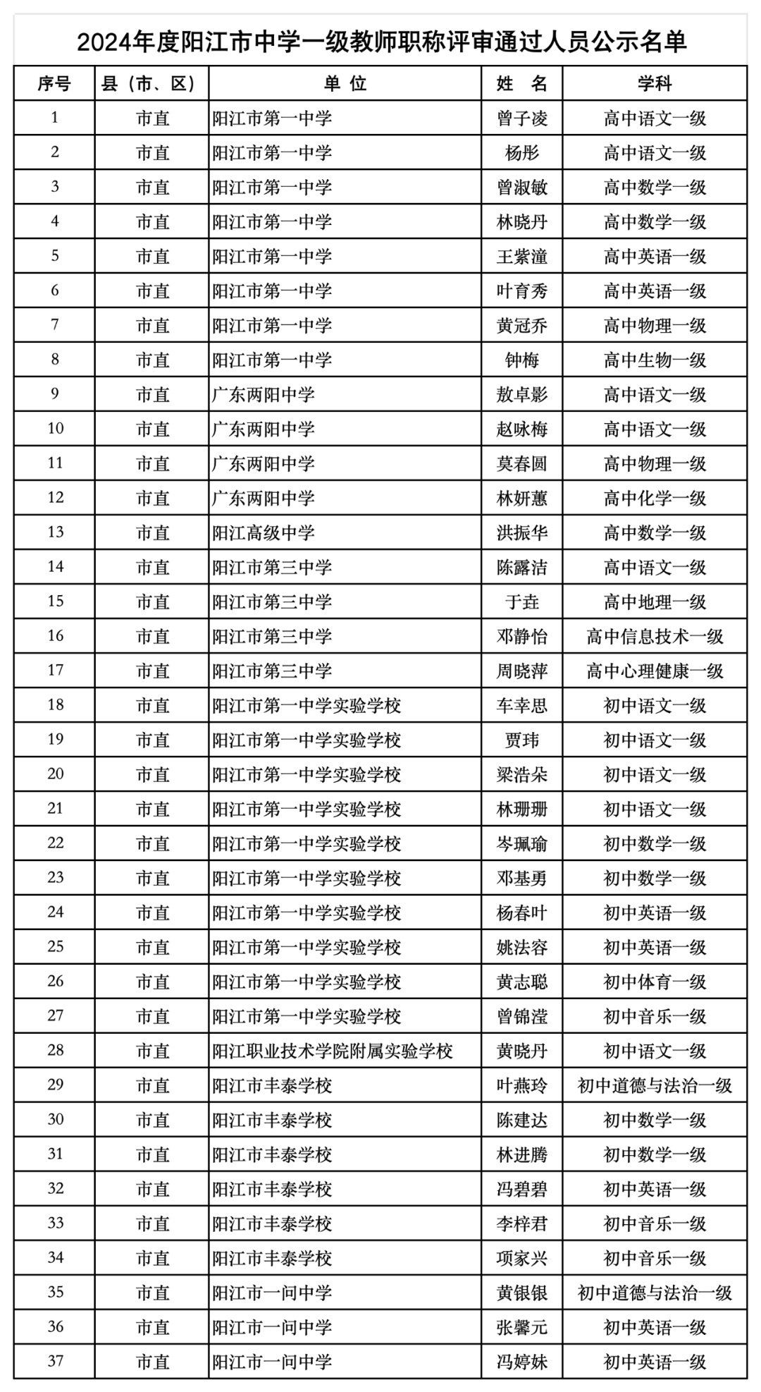 4.2024年度阳江市中学一级教师职称评审通过人员公示名单