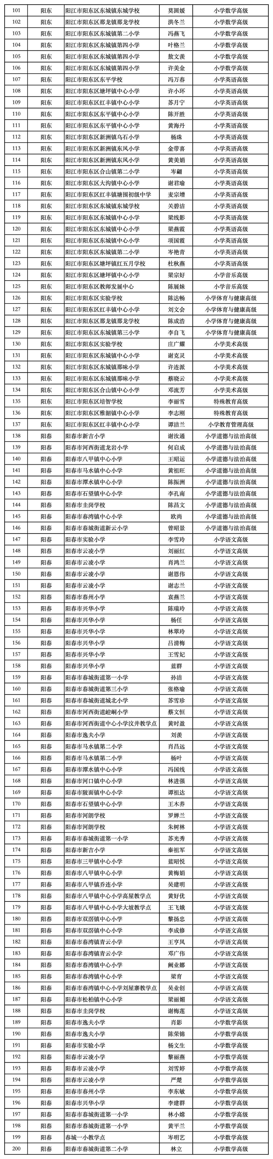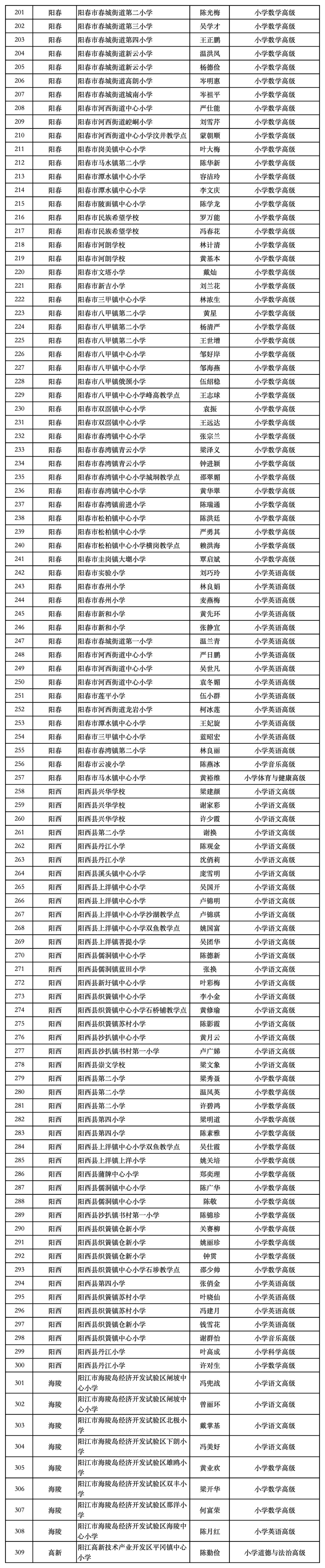 2.2024年度阳江市小学高级教师职称评审通过人员公示名单